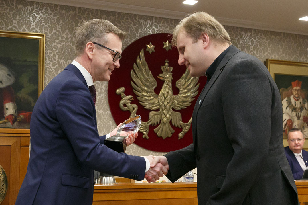 Podczas posiedzenia Senatu, które odbyło się 21 stycznia 2019 roku Rektor prof. Mirosław Wielgoś wręczył „Kryształowe Lancety” najlepszym nauczycielom w roku akademickim 2017/2018.